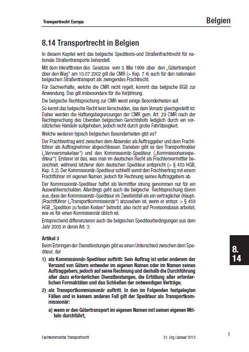Aktuelle Ergänzung Transportrecht